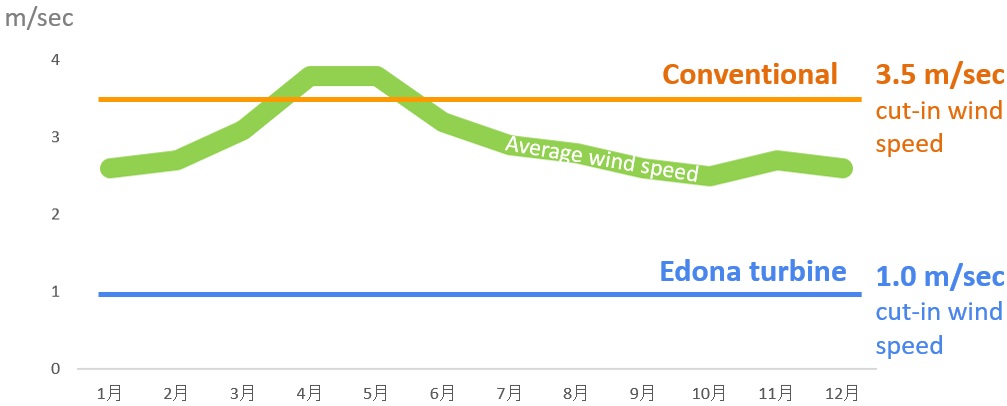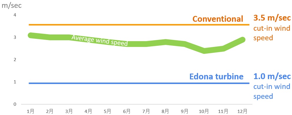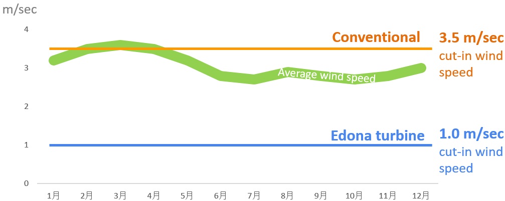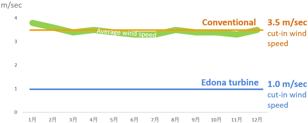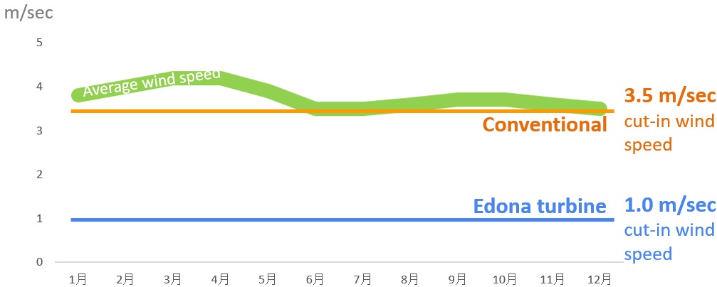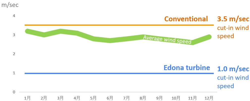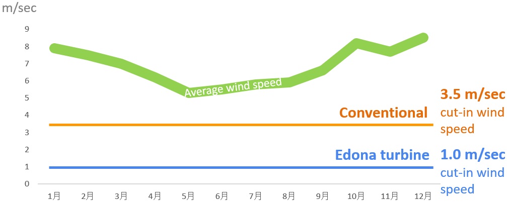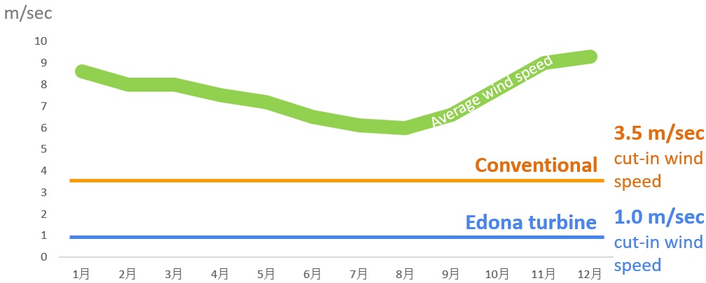 宗谷岬、北海道 1991 - 2020 年間の平均風速 |