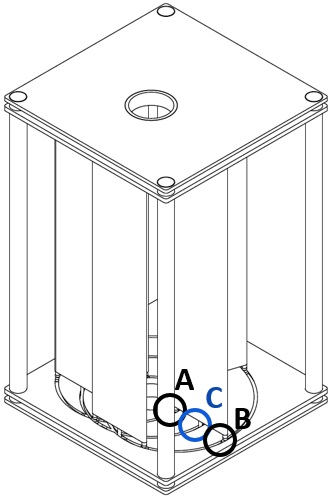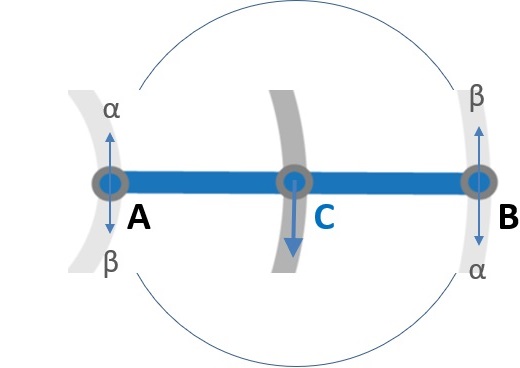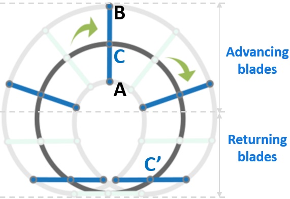 風向きに合わせてシャフト(C)が動くことで摩擦が軽減されます。 特に、戻りブレードの抵抗 (C')が最小限に抑えられているため、 運行時の摩擦も最小化されます。