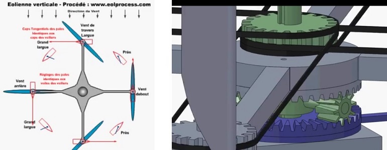 各ブレードの回転サイクル全体を発電に利用する垂直軸風力 |